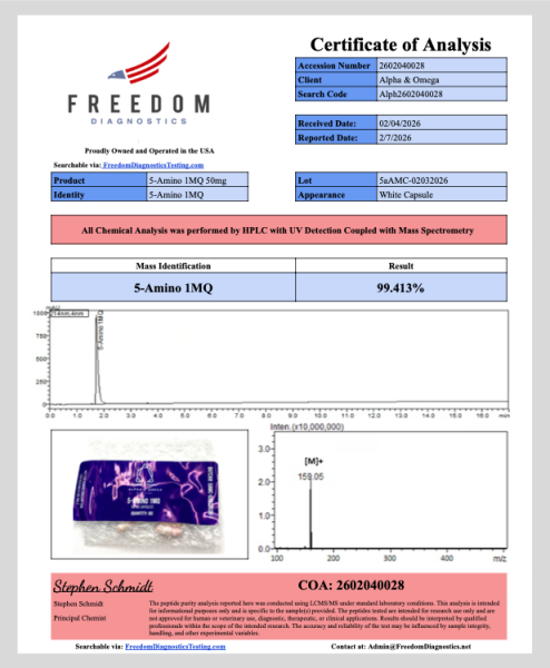 5-Amino-1MQ Capsules contain 5-amino-1-methylquinolinium, a small molecule with the formula C10H11N2+ and purity above 98.5%. Moreover, it comes in capsule form, allowing accurate dosing and easy handling in laboratory research. Each batch goes through strict quality checks to ensure purity, stability, and consistency.